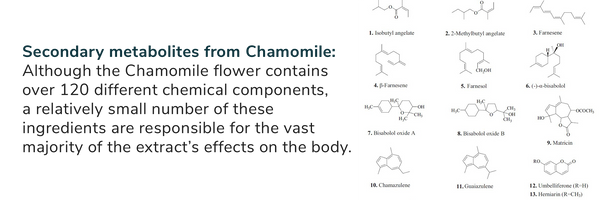 Unlike our more primitive ancestors, we have the technology to break the Chamomile extract down into its constituents and see just how it does all of these amazing things.