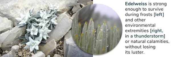 - The hair-like strands on the Edelweiss flowers protect them from frost and extremely cold weather.