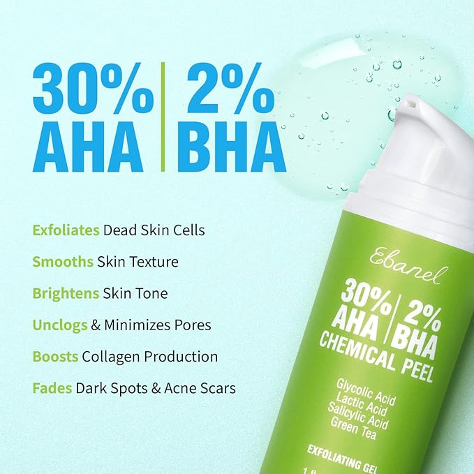 Doing a chemical peel at home with the Ebanel 30% AHA + 2% BHA Chemical Peel Exfoliant Gel can help your skin. Just be patient, start slow, and always prioritize hydration and sun protection.