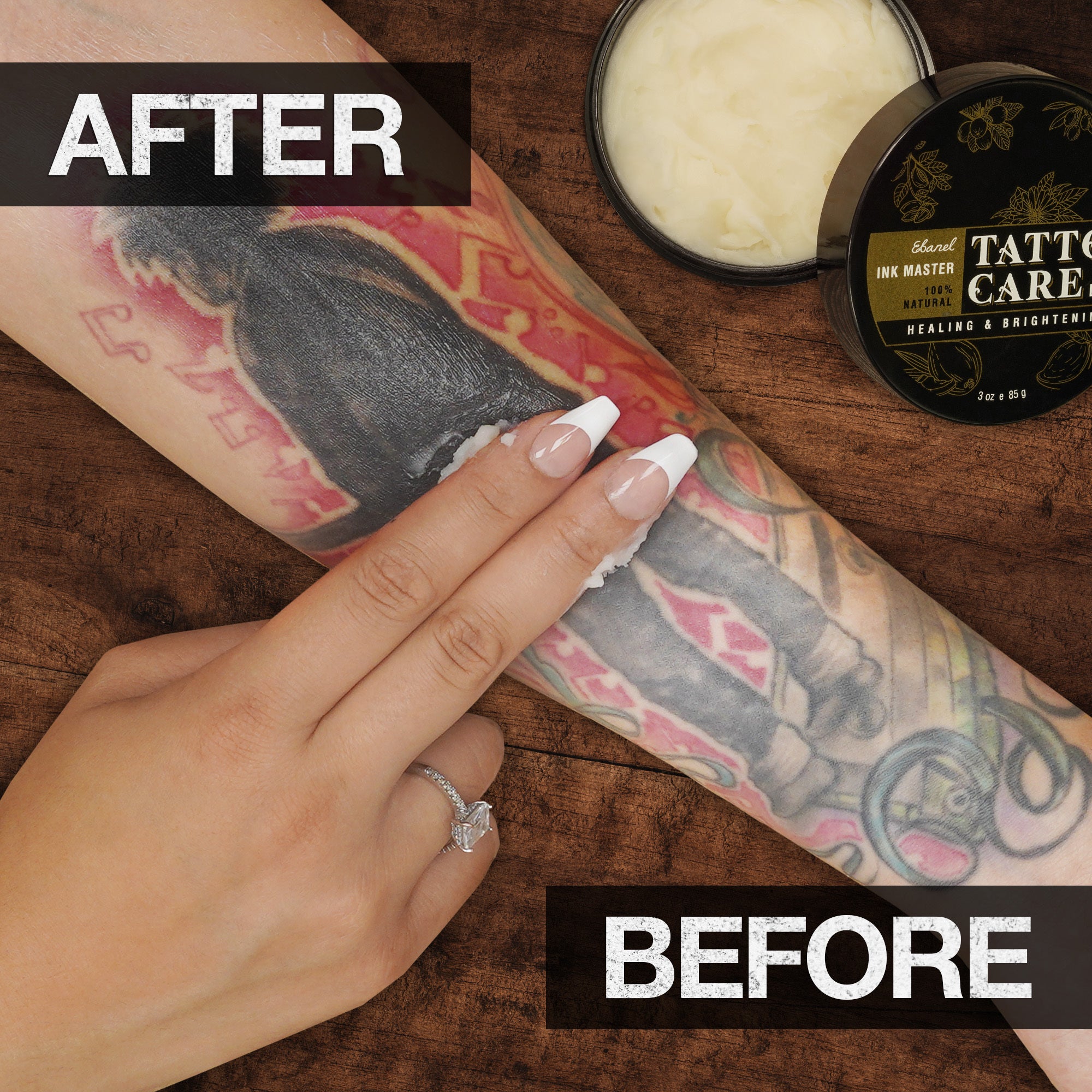 Dry skin can cause tattoos to look dull. A rich balm, like the Ink Master, can be used even on older tattoos a few times per week to keep the ink vibrant.